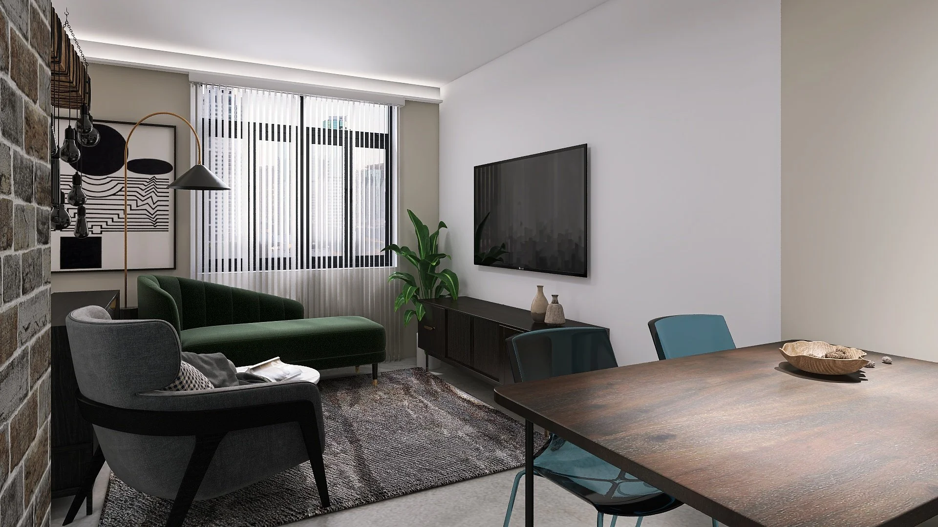 A one-bedroom apartment meticulously designed as a stylish bachelor pad bursting with personality, ideal for embracing an indulgent lifestyle.